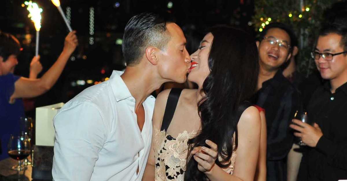 | Kim Lý, Trương Ngọc Ánh "khoá môi" trong đêm tiệc. |