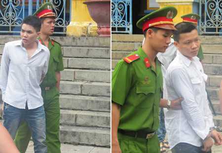 | Hai bị cáo Hà và Quân sau phiên tòa |