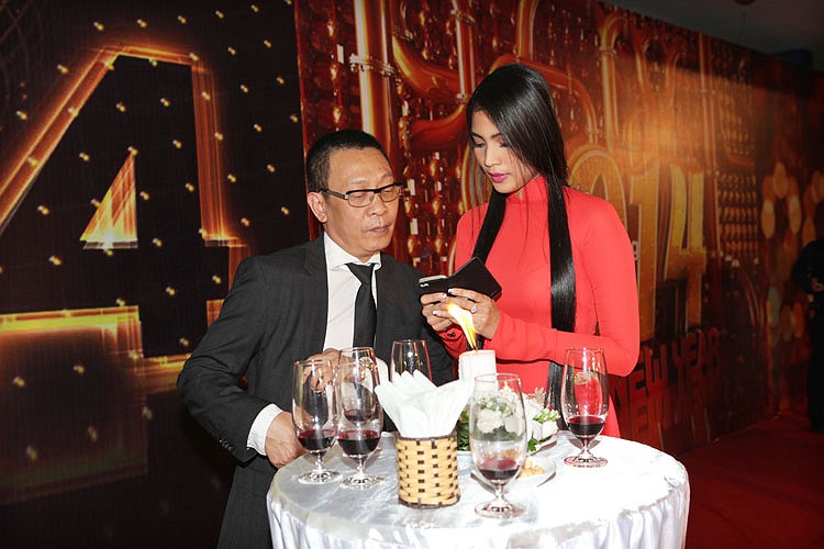 Sở hữu chiều cao nổi bật 1m73, người đẹp vô tình dìm hàng MC – nhà báo Lại Văn Sâm khi cùng tạo dáng chụp ảnh.