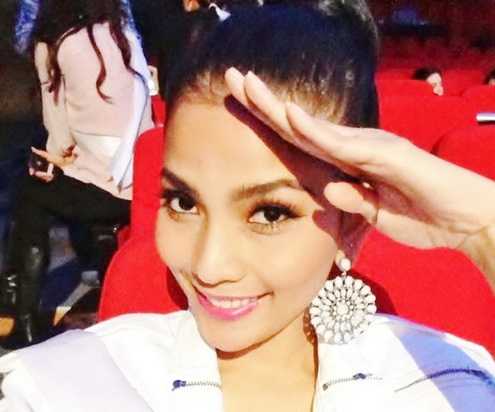 | Trương Thị May nhí nhảnh tạo dáng xì tin trước ống kính. |