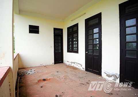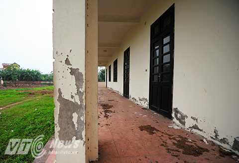 | Những mảng tường bong tróc, dọc hành lang của ngôi trường là nơi cho trâu bò, động vật phóng uế bừa bãi |