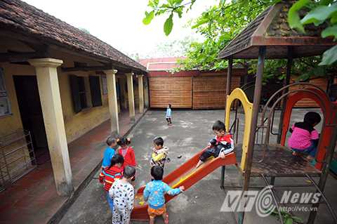 Trong khi đó, cách nơi này khoảng 300m là dãy nhà cấp 4 - ngôi trường mà hơn 50 em nhỏ trường mầm non thôn Lương Xá đang phải theo học, diện tích sử dụng đất bình quân chưa đầy 3m2/trẻ. Trong khi đó, theo tiêu chuẩn quốc gia về yêu cầu thiết kế của trường mầm non thì diện tích sử dụng đất bình quân phải là 12m2/trẻ đối với khu vực nông thôn.