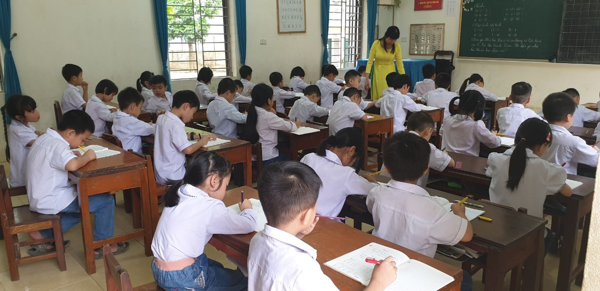 Hiện nhà trường đã cho phun khử khuẩn toàn trường, lau chùi bàn ghế, đồ dùng dạy học, sắp xếp bàn ghế đảm bảo giãn cách.