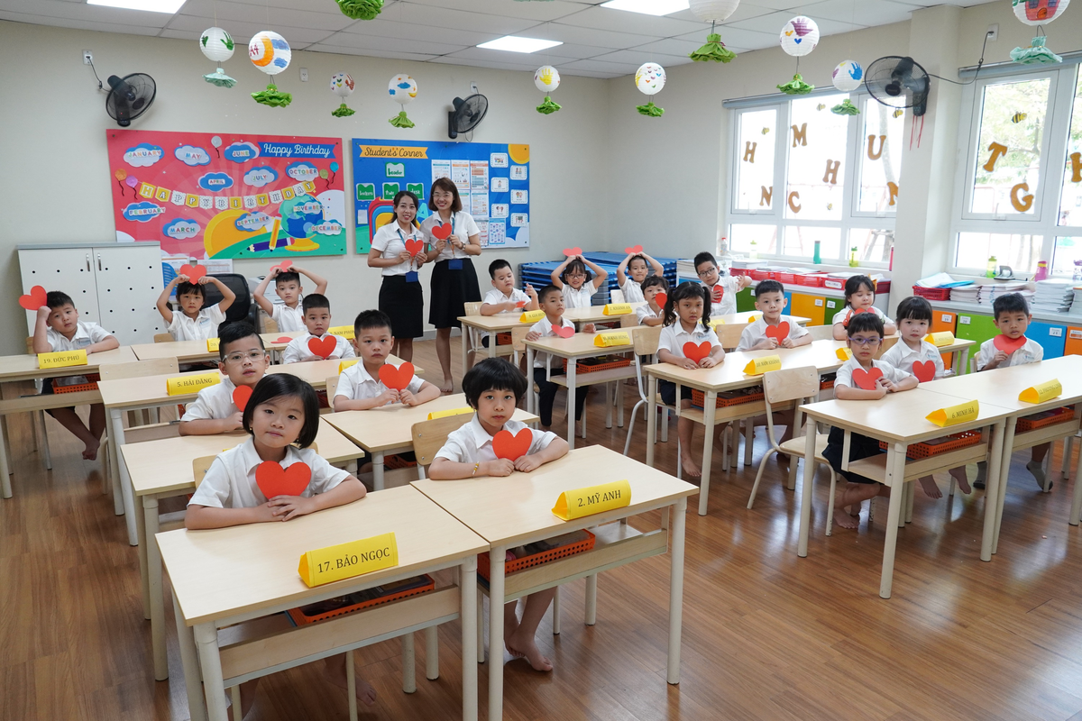 Các bạn học sinh khối 1 Wellspring vô cùng háo hức với ngày khai giảng đặc biệt này.