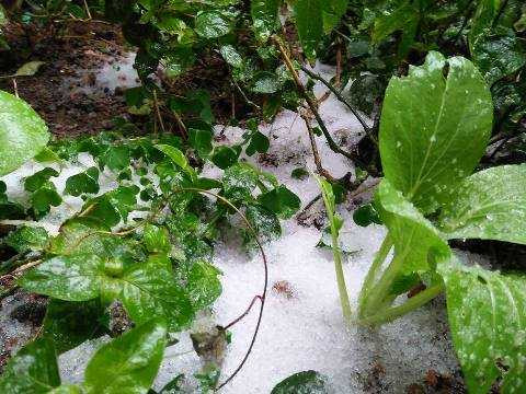 Băng tuyết trắng cả vườn rau (Ảnh: Diệp Hằng