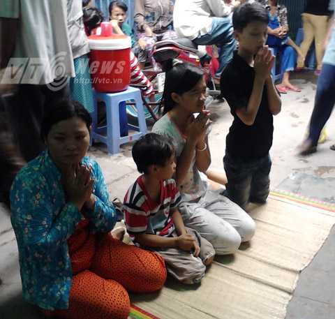 | Vợ và các con, cháu của nạn nhân Thái Văn Bình trong tang lễ. Ảnh: Phan Cường |