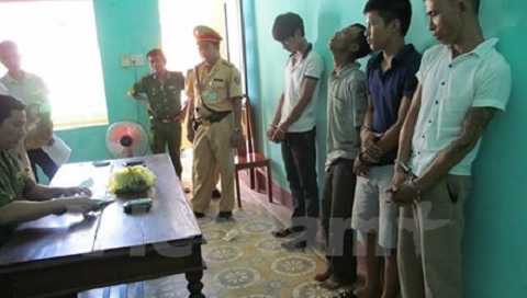 | Các đối tượng bị bắt được đưa về cơ quan công an. Ảnh: Nguyễn Đức Thọ/Vietnam+ |