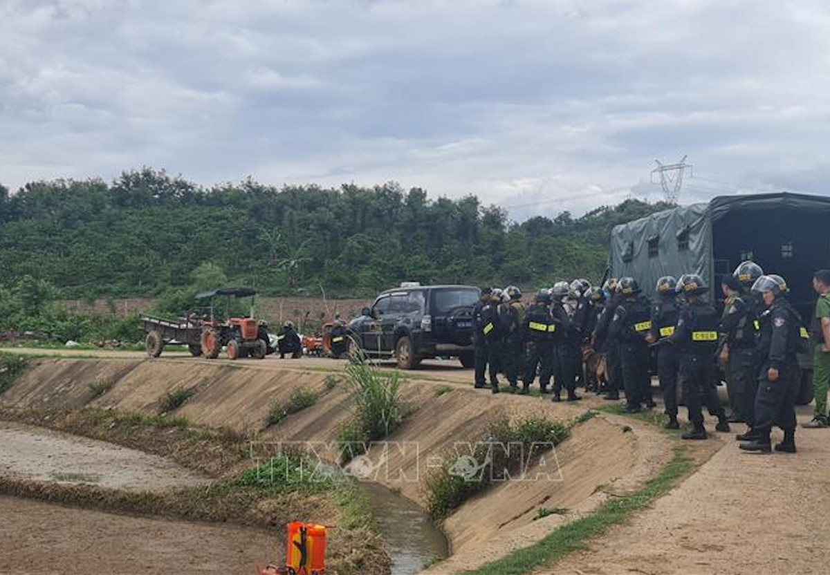 Cảnh sát Cơ động, Cảnh sát đặc nhiệm, Công an tỉnh Đắk Lắk, lực lượng đặc nhiệm Quân khu 5 phối hợp triển khai phương án vây bắt các đối tượng tại cầu Cá Ngựa, thôn Đồng Sơn, xã Hòa Hiệp, huyện Cư Kuin. (Ảnh tư liệu: Hưng Thịnh/TTXVN)