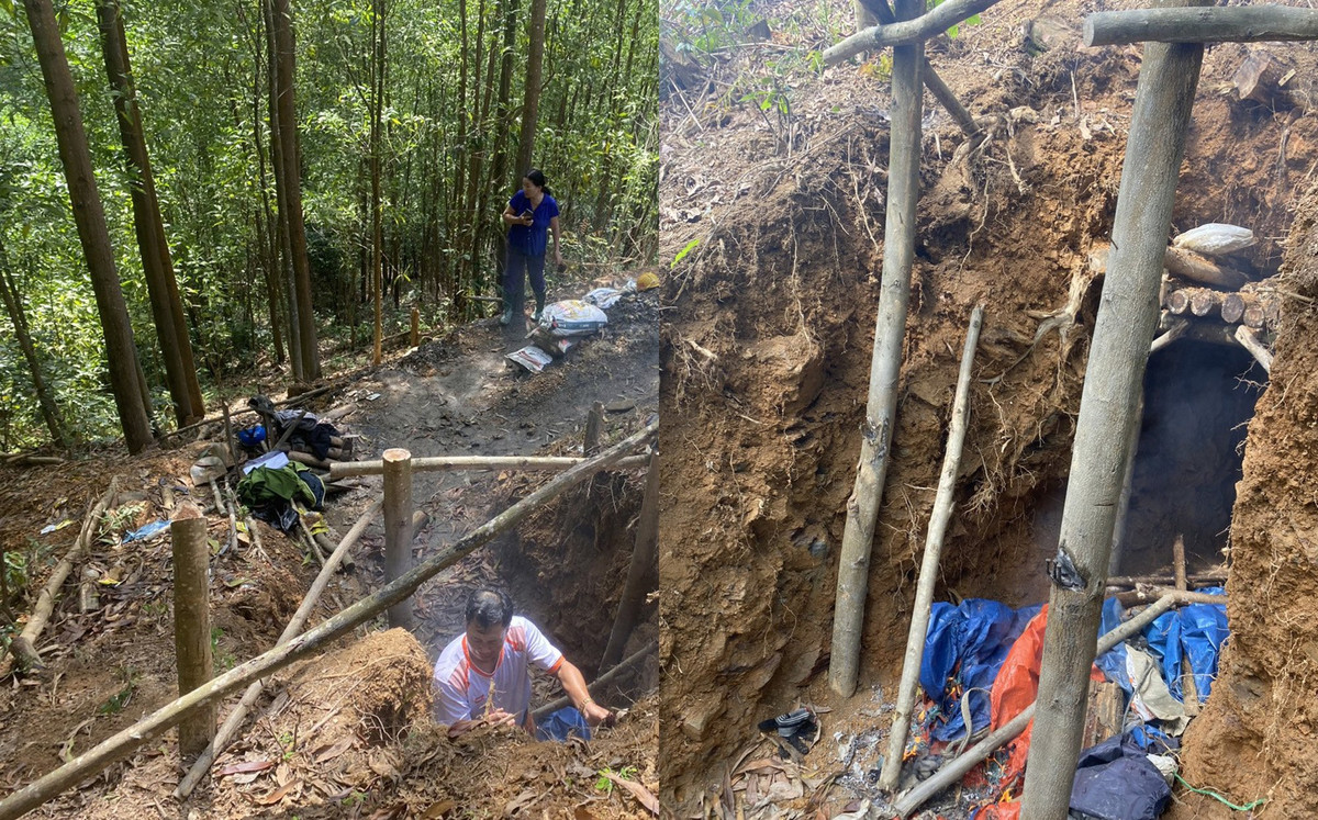 Khi Tổ công tác tiến hành truy quét, lợi dụng địa bàn hiểm trở, các đối tượng đã tháo chạy. Tại hiện trường, lực lượng chức năng phát hiện hơn 70 bao (loại 50kg), bên trong có chứa nhiều đất đá; 1 hố đã được đào nham nhở, bên dưới có nhiều vật dụng liên quan đến việc khai thác khoáng sản như: Cuốc, xẻng, can nhựa, tời kéo, lều trại...