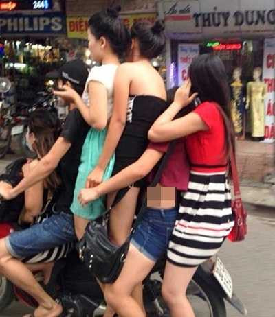 (VTC News) - 'Quái xế' vô tư chở từ 3 đến 5 chân dài trên một chiếc xe máy lạng lách, đánh võng khiến nhiều người đi đường thót tim.
