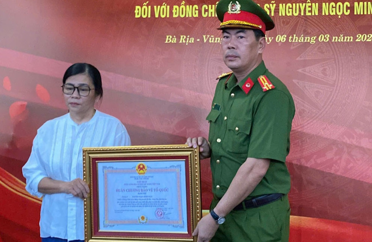 Sáng 6/3, Công an tỉnh Bà Rịa - Vũng Tàu tổ chức lễ truy tặng Huân chương bảo vệ Tổ quốc hạng Nhì của Chủ tịch nước CHXHCN Việt Nam và Huy hiệu “Tuổi trẻ dũng cảm” của Ban Chấp hành Trung ương Đoàn TNCS Hồ Chí Minh cho Thượng sỹ Nguyễn Ngọc Minh Nhật, chiến sĩ Cảnh sát Cơ động hy sinh khi thực hiện nhiệm vụ.