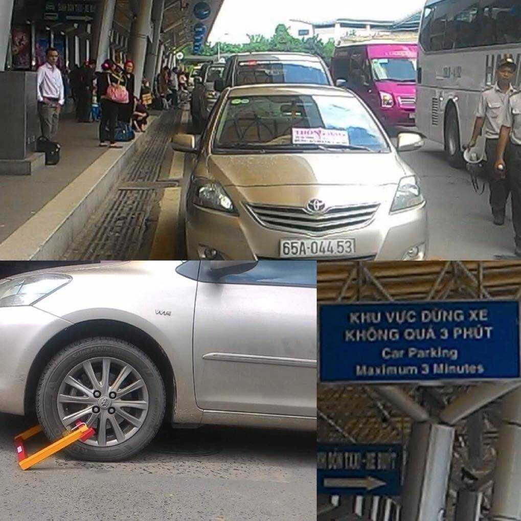 Chiếc ôtô nghênh ngang đậu xe hàng giờ ở khu vực cấm đậu xe quá 3 phút của sân bay Tân Sơn Nhất