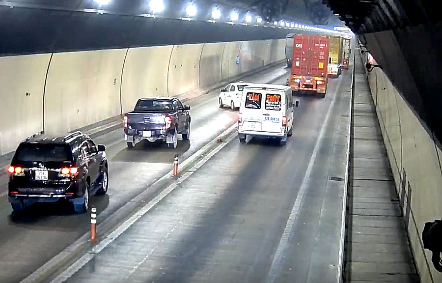Hàng loạt ô tô ngang nhiên lấn làn, vượt ẩu trong hầm Hải Vân. (Ảnh: Cắt từ clip).