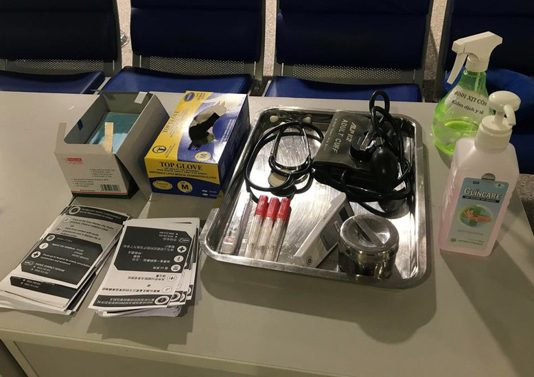 Thiết bị và dụng cụ y tế khám lâm sàng tại sân bay Tân Sơn Nhất.