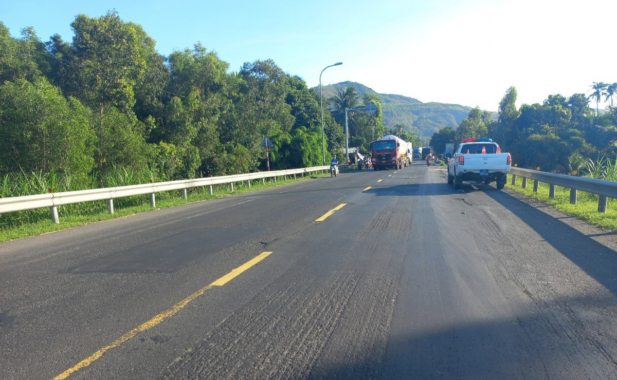 Vụ va chạm giữa xe máy và xe ô tô đầu kéo xảy ra lúc 3h sáng 12/10 tại QL 1 (Cầu Tam Giang), thuộc khu phố Long Bình, Xuân Phú, Sông Cầu, Phú Yên.