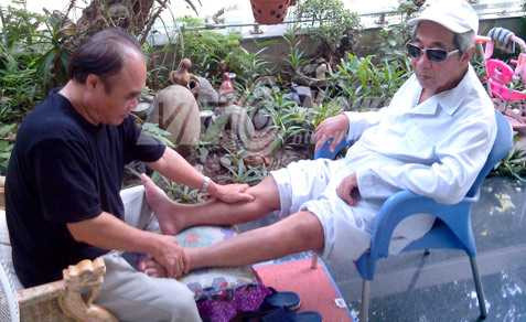 | Ông Nguyễn Tam Kha bấm huyệt cho bệnh nhân tai biến |