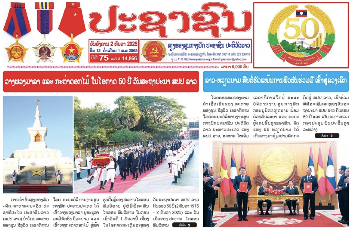 Báo Nhân Dân Lào - tiếng nói của Trung ương Đảng Nhân dân Cách mạng Lào đăng nhiều bài viết đậm nét về mối quan hệ Lào - Việt Nam, tình hữu nghị vĩ đại, đoàn kết đặc biệt và hợp tác toàn diện là mối quan hệ có một không hai trên thế giới, độc lập của dân tộc Lào và 50 năm bảo vệ và phát triển đất nước Lào.