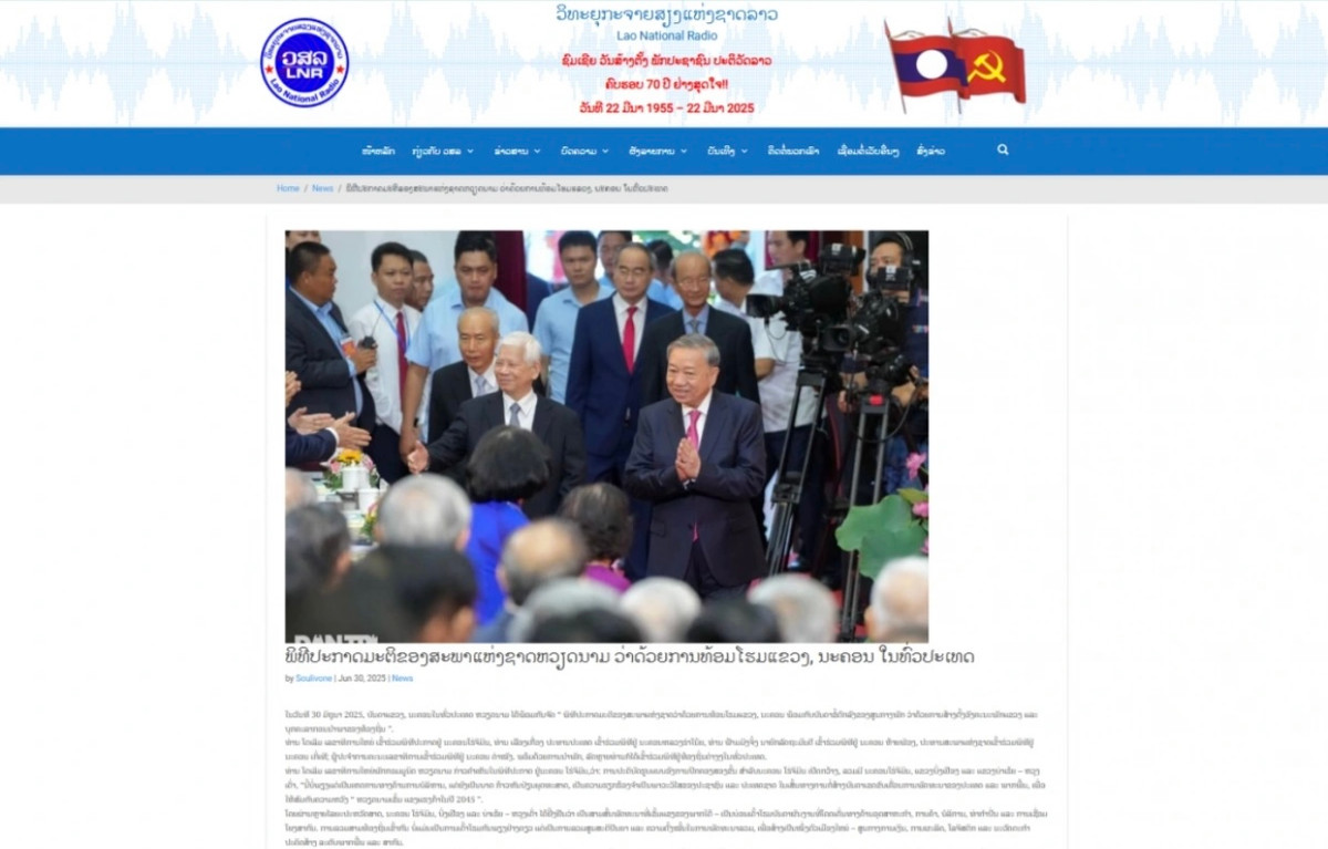 Trang điện tử của Đài Phát thanh Quốc gia Quốc gia Lào đưa tin về sự kiện Việt Nam sắp xếp bộ máy, đơn vị hành chính.