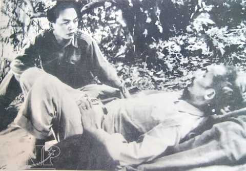 | Trên đường đi Chiến dịch Biên giới, Đại tướng Tổng tư lệnh Võ Nguyên Giáp thăm Chủ tịch Hồ Chí Minh (1950). |