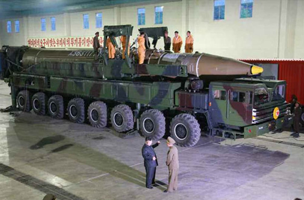 Chủ tịch Triều Tiên Kim Jong-un thị sát tên lửa Hwasong-14. (Ảnh: KCNA)