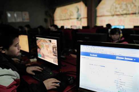 | Người dùng facebook tại một quán Internet ở Vũ Hán, Trung Quốc |