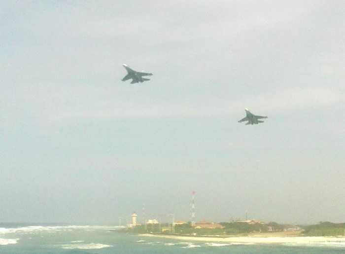 Hình ảnh được cho là hai chiếc Su-30 của Việt Nam bay tuần tra ở đảo Trường Sa lớn