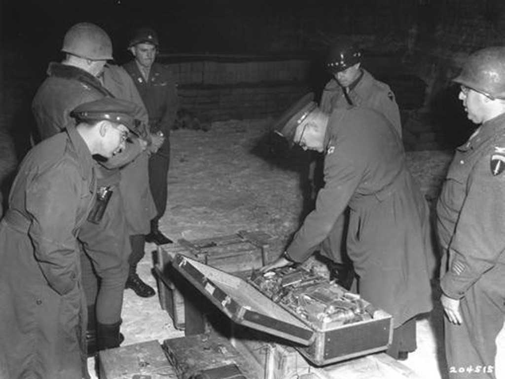 Tướng Eisenhower kiểm tra kho vàng thu được từ chiến dịch Hoa Huệ Vàng của quân đội Nhật hoàng