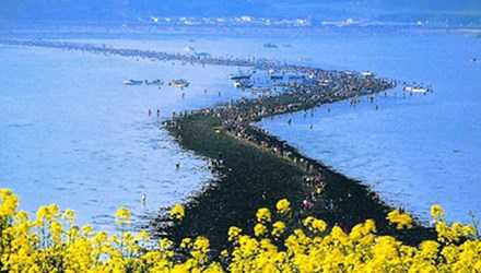 Sau gần năm trời chờ đợi, cuối cùng nhà khoa học "cứng đầu" kia cũng được chứng kiến cảnh tượng chưa từng được thấy: "Biển chia đôi". Từ đó, con đường nối liền hai hòn đảo do "biển chia đôi" tạo ra ở xứ sở kim chi bắt đầu nổi tiếng và trở thành một trong những địa điểm du lịch hút khách nhất trên thế giới.