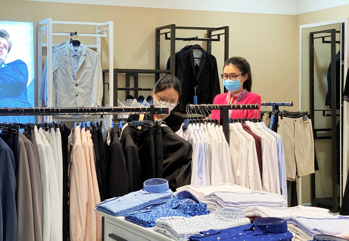 Khách hàng lựa chọn món hàng yêu thích tại một gian hàng trong TTTM Sense City Phạm Văn Đồng.