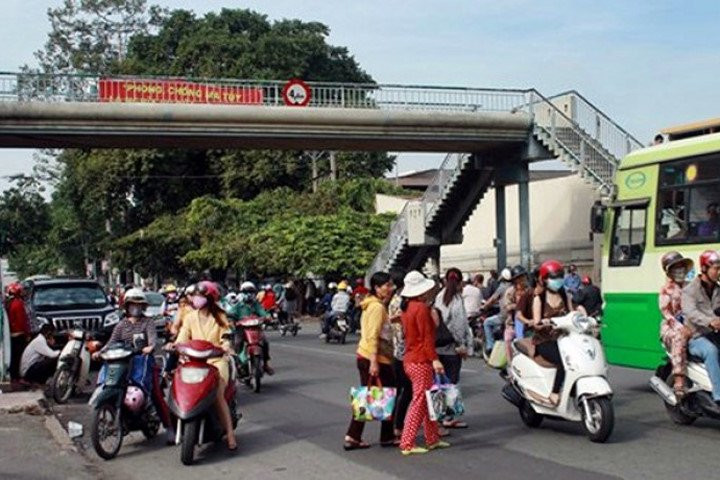 Người đi bộ qua đường sai quy định. Ảnh minh họa