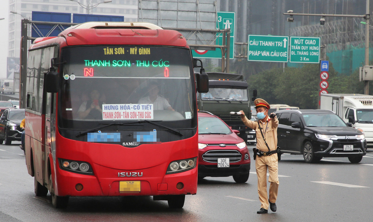 Đội CSGT số 6, Phòng CSGT Hà Nội kiểm tra ô tô khách trên tuyến đường Phạm Hùng
