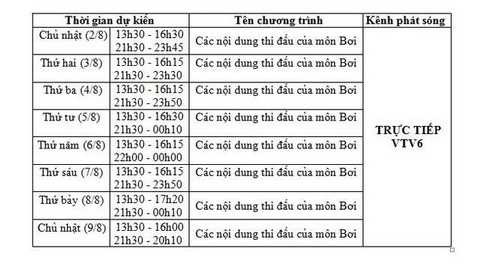 | Lịch truyền hình trực tiếp giải bơi VĐTG 2015 của VTV |
