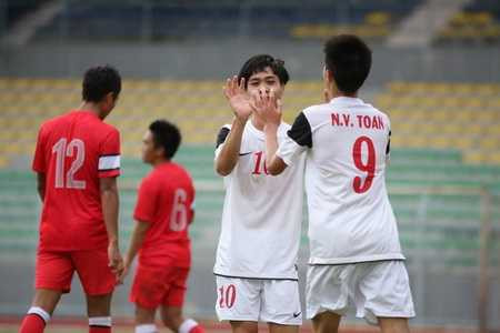 Đội hình ra sân: Văn Trường- Văn Sơn- Văn Khánh- Hồng Duy- Tuấn Anh- Văn Toàn- Công Phượng- Đức Huy- Ksor Úc- Thanh Tùng-Duy Mạnh