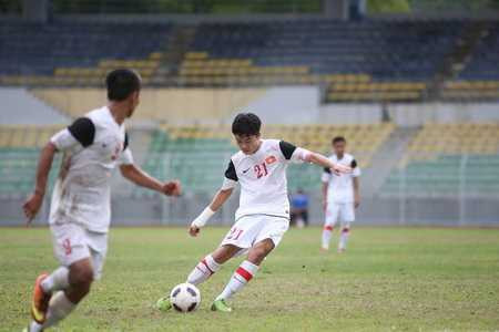 69' Xuân Trường thực hiện nhưng không thành công. Văn Sơn sau đó đá bồi đưa bóng đi vọt xà.