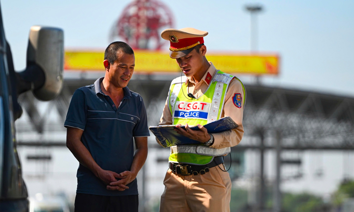 Tại tuyến cao tốc Hà Nội - Hải Phòng, trong những ngày đầu triển khai phân làn, một số phương tiện chưa nắm được phương án tổ chức giao thông mới. Đội CSGT đường bộ cao tốc số 2 (Cục CSGT) dùng loa phát thanh trên ô tô tuần tra kiểm soát để tuyên truyền, hướng dẫn người tham gia giao thông.