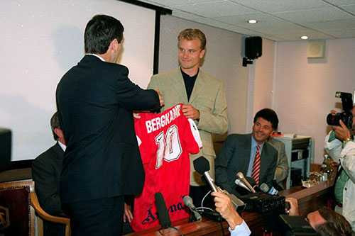 Ba năm sau ngày Man Utd phá két vì 1 siêu tiền đạo, tới lượt Arsenal "chạy đua vũ trang" với Quỷ đỏ bằng quả bom tấn mang tên Dennis Bergkamp. Danh thủ người Hà Lan khi này đã nổi tiếng toàn châu Âu sau màn trình diễn tuyệt vời ở Euro 1992.