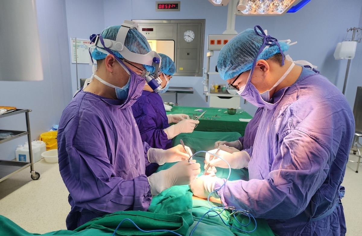 Kíp bác sĩ phẫu thuật cho bệnh nhân. (Ảnh: BVCC)
