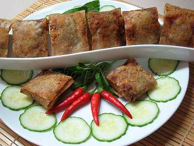 Nêm gia vị vừa ăn. Dùng bánh tráng gói nhân hình tam giác, chiên vàng. Phi tỏi, cho tương vào xào, nêm đường vừa ăn; cho mè rang, ớt băm vào. Ram chấm tương ăn kèm rau thơm.