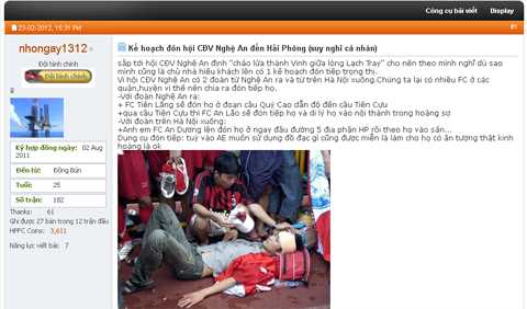 Thế nhưng, những lời mời chào này chỉ là thiểu số và nó không đủ sức đảm bảo an toàn cho CĐV xứ Nghệ khi mà không ít các thành viên khác trên cùng diễn đàn lại tỏ ra quá khích với những lời hăm dọa.Quá khứ chưa khép lại trên diễn đàn CĐV hai đội!