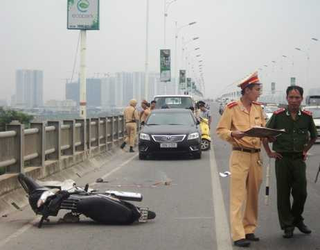 Vụ tai nạn xảy ra vào khoảng 13 giờ 20 phút (20/6) trên cầu Vĩnh Tuy đoạn chạy qua phường Long Biên, quận Long Biên, Hà Nội.