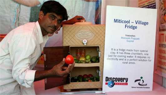 (VTC News) - Chiếc tủ lạnh năng lượng mặt trời Mitticool được kỹ sư – nghệ nhân làm đồ gốm Ấn Độ Mansukhbhai Prajapati phát minh từ năm 2006. Được làm từ đất sét, chiếc tủ lạnh đặc biệt này hoạt động hoàn toàn bằng năng lượng mặt trời và có thể giữ cho thức ăn tươi trong vòng 5 ngày.