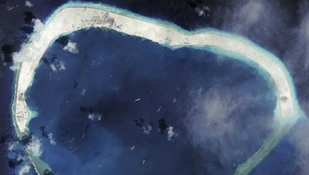 | Ảnh vệ tinh chụp đá Vành Khăn (quần đảo Trường Sa) hôm 8/9 |