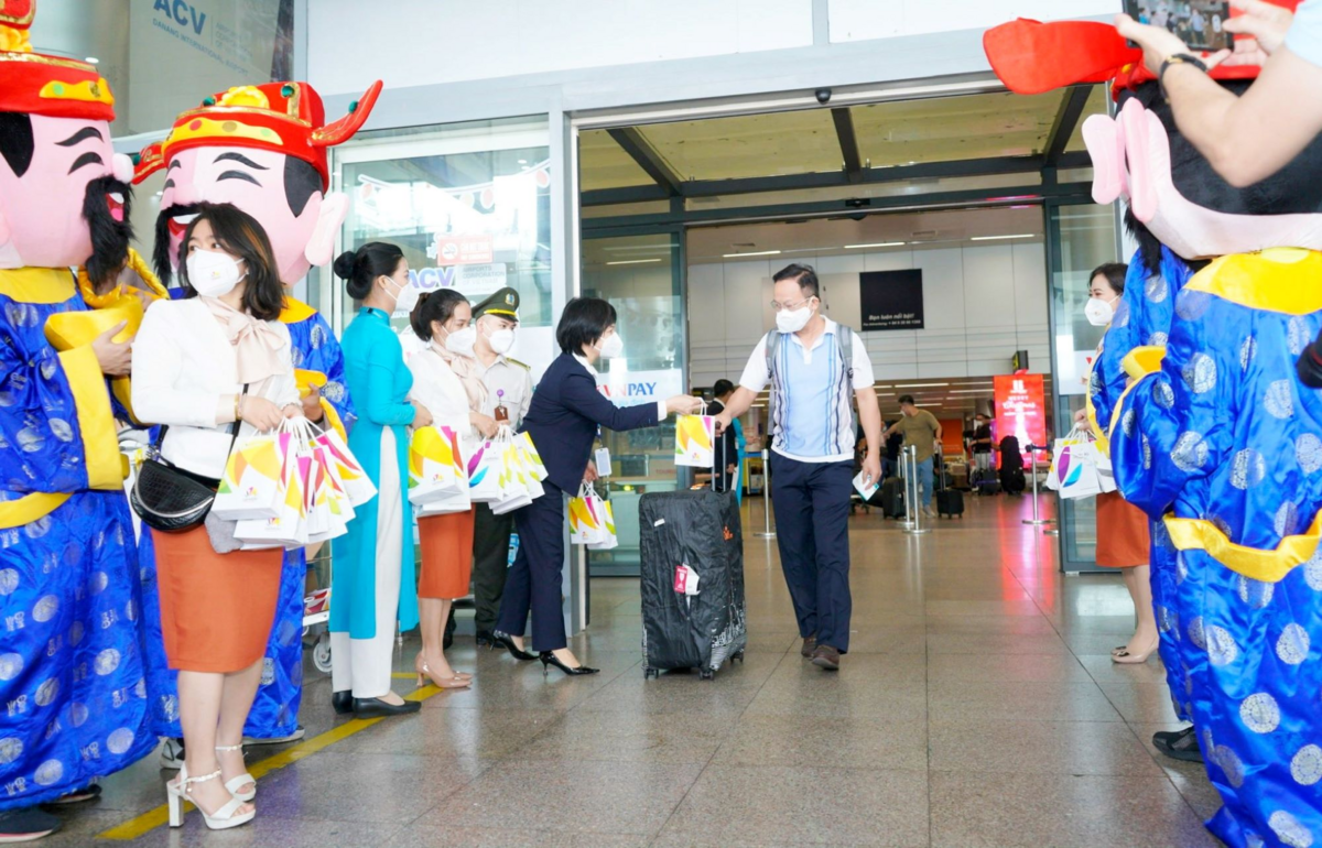 Tại Sân bay Quốc tế Đà Nẵng, đại diện Sở Du lịch thành phố cùng các đơn vị liên quan tặng hoa, đặc sản lưu niệm, khẩu trang và ấn phẩm cho các du khách. Cũng tại buổi đón, 3 du khách may mắn nhận được 3 thẻ quà tặng vé máy bay khứ hồi Vietnam Airlines do Hãng hàng không Vietnam Airlines tài trợ.