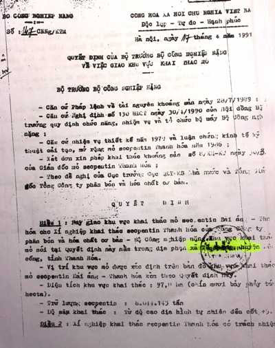 - Xin ông cho biết sự việc Công ty cổ phần secpentin và phân bón Thanh Hóa tự ý sữa chữa giấy phép khai thác của Bộ Công nghiệp nặng (trước đây) xảy ra như thế nào?