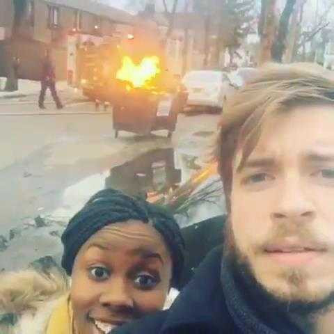 Đi qua đám cháy, đôi bạn trẻ quyết định chụp kiểu ảnh tự sướng gần đám cháy trong khi lính cứu hỏa đang nỗ lực dập tắt nó.