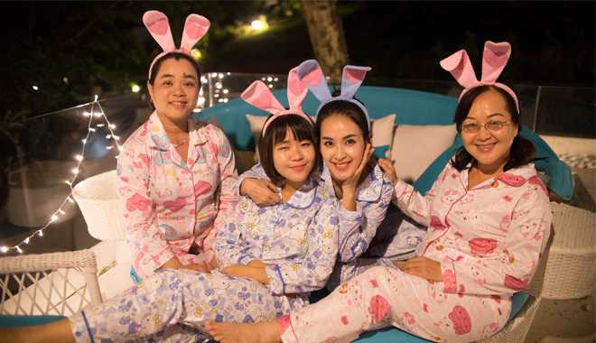 | Nữ diễn viên “Cổng mặt trời” đã mời mẹ Thu (bên trái) và bạn bè đến dự tiệc ở một khu nghỉ dưỡng sang trọng, mừng cô chia tay cuộc sống độc thân, chuẩn bị bước sang một giai đoạn mới của cuộc đời. |