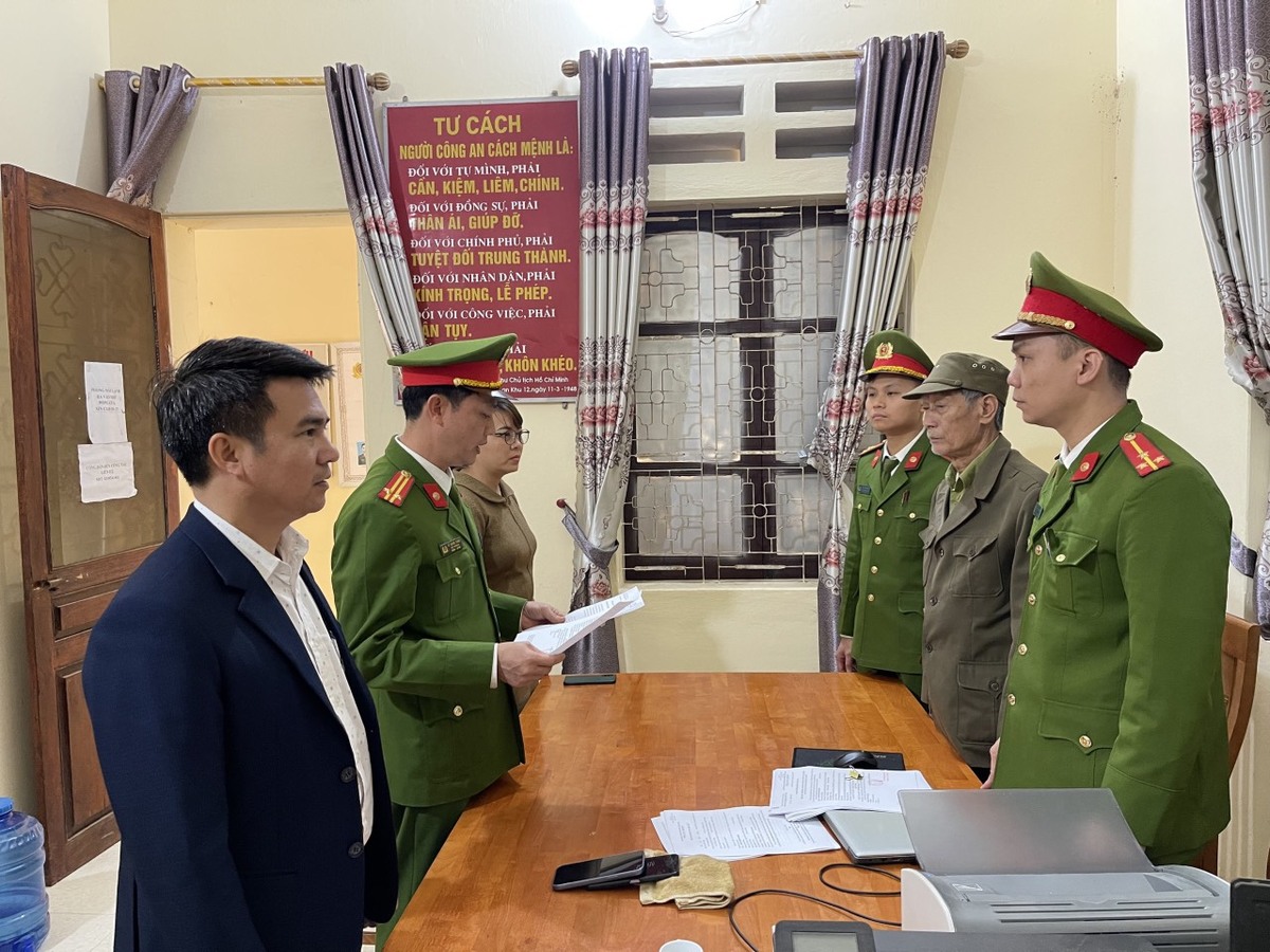 Công an huyện Lục Ngạn (Bắc Giang) tống đạt các quyết định, lệnh đối với bị can Đương. (Ảnh: Công an Bắc Giang).