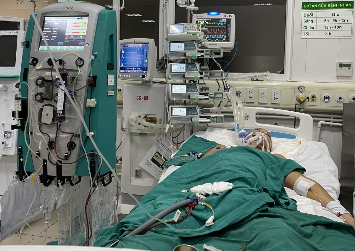 Ê kíp bác sĩ khoa Cấp cứu đặt ống nội khí quản, cho bệnh nhân điều trị truyền thuốc vận mạch, bù dịch và lọc máu. Sau 3 ngày lọc máu, xu hướng huyết động của bệnh nhân cũng cải thiện hơn, hiện bệnh nhân đã cắt được thuốc vận mạch, dừng lọc máu, các toan chuyển hóa, toan lactic đã cơ bản ổn định.