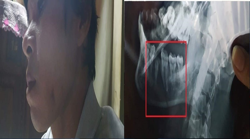 Theo hồ sơ bệnh án, anh Phúc bị gãy phần quai hàm, gãy kèm 3 cái răng cùng vết thương hở vùng sát cằm phải khâu nhiều mũi.