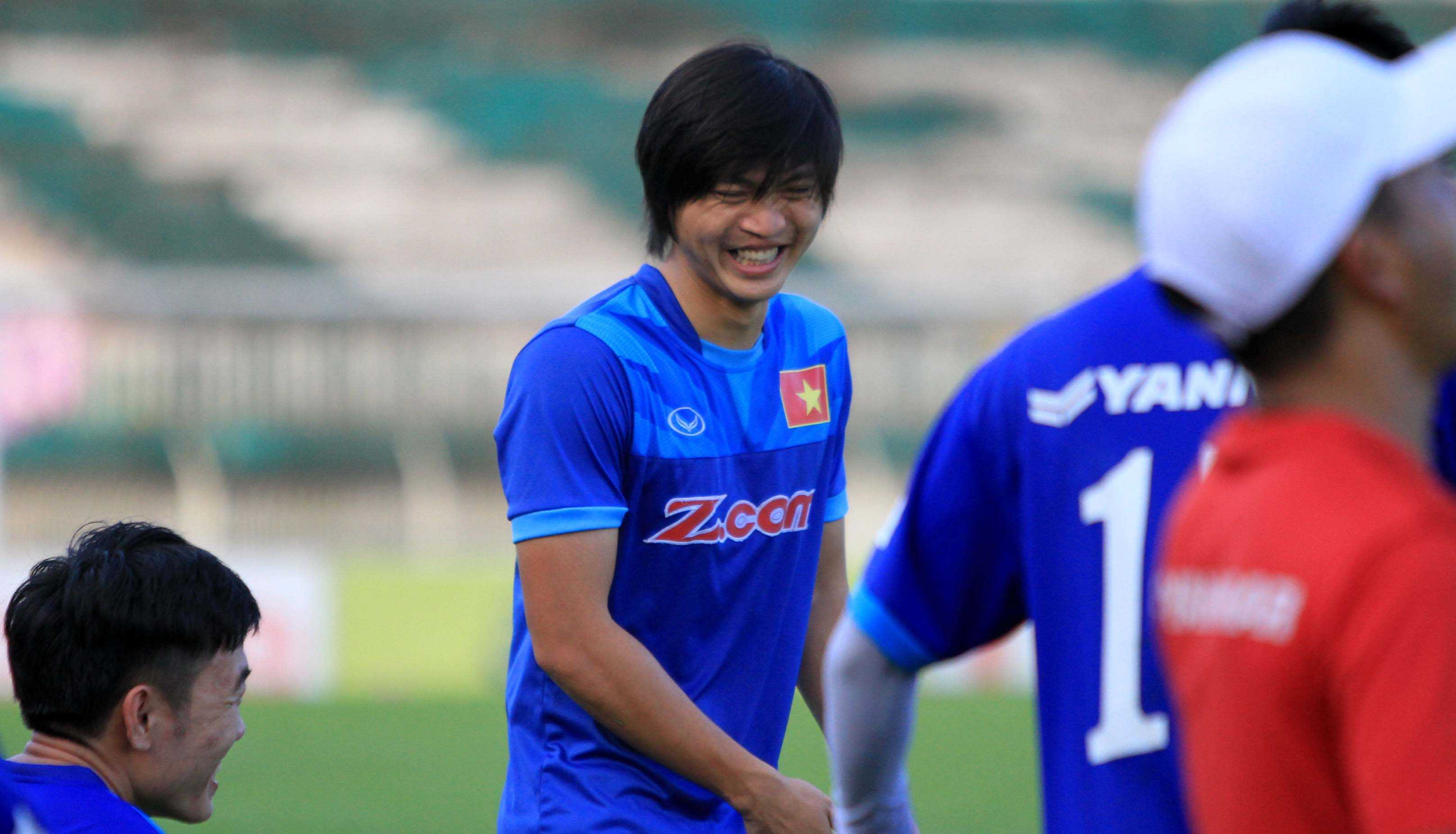 Suốt buổi tập, Tuấn Anh rất hay trêu đùa với các đồng đội (Ảnh: Hoàng Tùng)